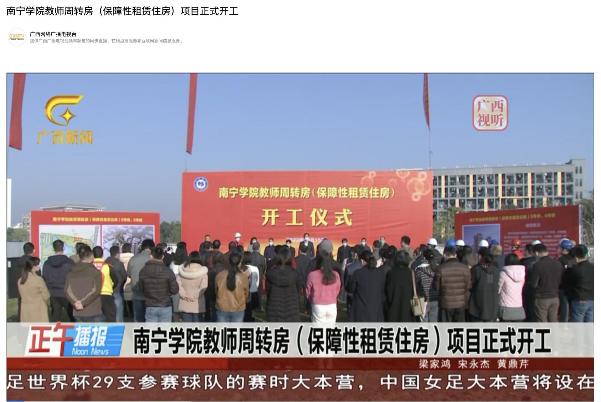 【媒体看南院】广西电视台、南宁电视台报道qm球盟会教师周转房(保障性租赁住房)项目正式开工