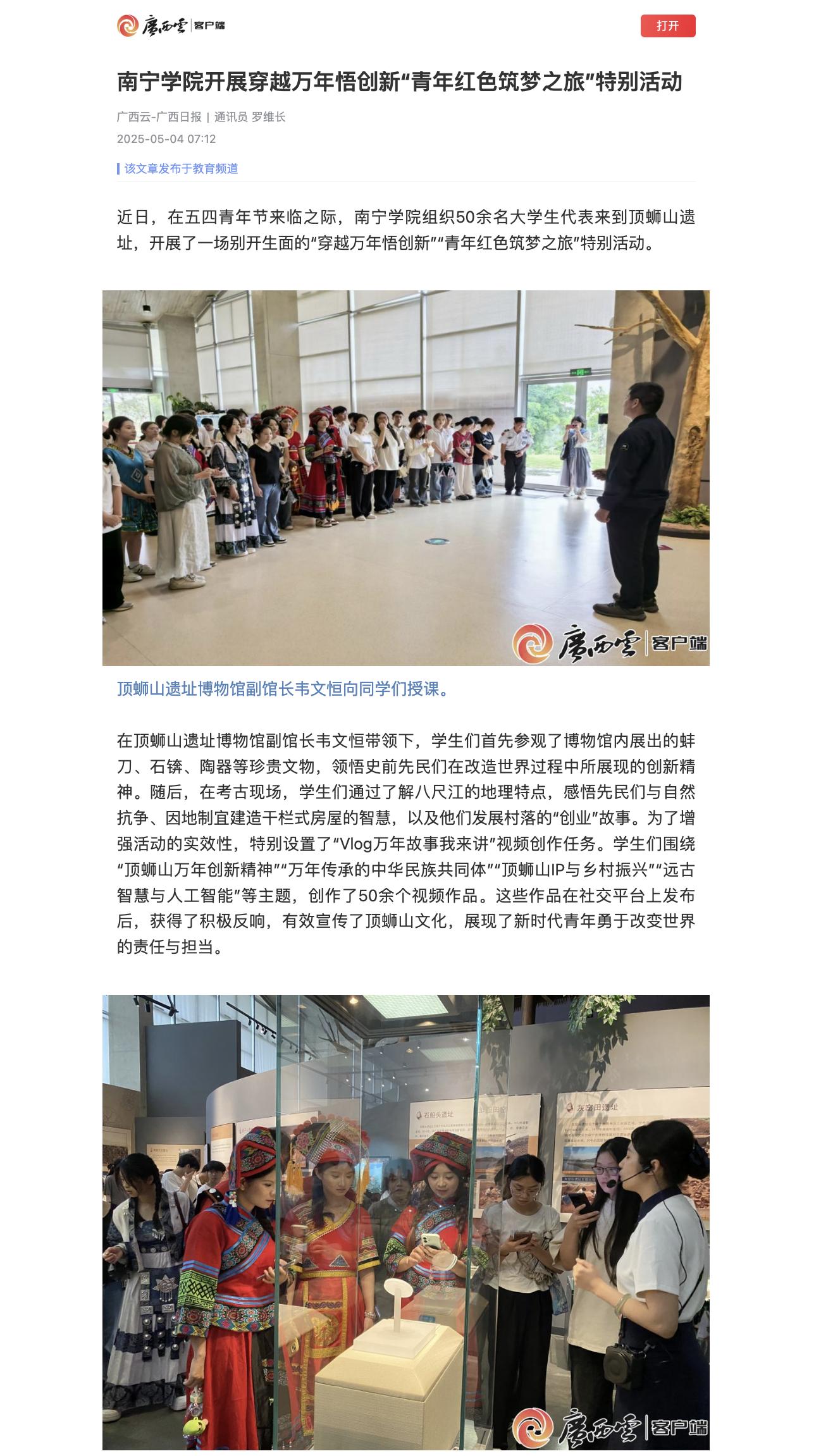 【媒体看南院】中央广电总台国际在线、广西日报报道qm球盟会开展“青年红色筑梦之旅”特别活动