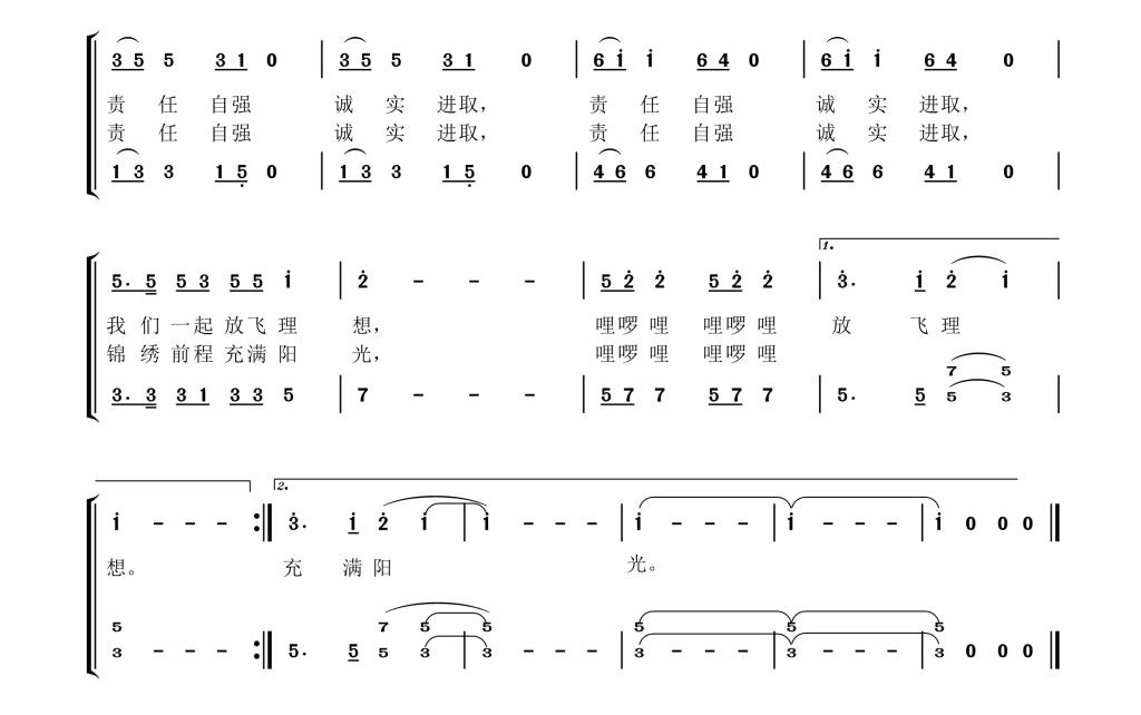 校歌是学校精神风貌的重要文化符号,体现的是学校的办学理念和传统,反映的是师生的愿望和追求。qm球盟会校歌《锦绣前程 充满阳光》产生于2009年邕江大学时代,为了传承历史,2012年学校升格为本科高校后沿用原校歌。